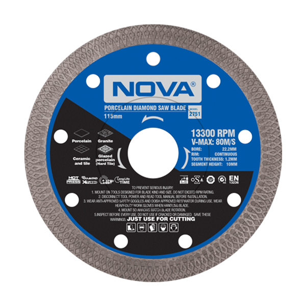 صفحه برش الماسه 115 میلیمتری نووا مدل 2751، ابزاری حرفهای و دقیق برای برش پرسلان، گرانیت، سرامیک و کاشیهای سخت است. این صفحه با طراحی توربو مشبک خود، امکان برش خشک و مستقیم را بدون لبپریدگی فراهم کرده و با تراکم بالای ذرات الماس در لبه، استحکام، سرعت و طول عمر بالایی دارد. ساختار آن بهگونهای طراحی شده که بهکمک مکانیزم خنککننده ویژه، حرارت ایجادشده در حین کار را بهسرعت دفع میکند و پایداری عملکرد را افزایش میدهد. وجود فلنج محافظ نیز مانع تاببرداشتن یا ترک خوردن صفحه در سرعتهای بالا میشود. با قطر 115 میلیمتر، سوراخ مرکزی 22.2 میلیمتر و حداکثر سرعت 13,300 دور در دقیقه، این مدل برای استفاده در دستگاههای فرز زاویهای پرتابل ایدهآل است. ترکیب دقت، دوام و ایمنی بالا، صفحه برش الماسه توربو 2751 را به انتخابی مطمئن برای متخصصان حوزه ساختمان و کاشیکاری تبدیل کرده است.