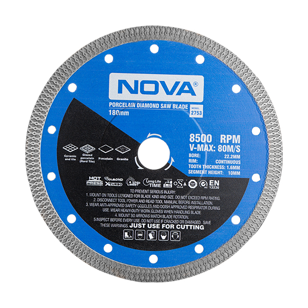 صفحه برش الماسه توربو 180 میلیمتری نووا مدل 2753، ابزاری حرفهای و قدرتمند برای برش دقیق و سریع انواع مصالح سخت از جمله پرسلان، گرانیت، سنگ مرمر، سرامیک و سفال است. این صفحه با فناوری FAST CUT طراحی شده تا برشهایی یکنواخت، سریع و بدون لبپریدگی ایجاد کند. ساختار توربو مشبک و لبه فوقالعاده نازک آن، دقت بالا و عملکردی روان را در کاربریهای سنگین تضمین میکند. استفاده از الماسهای صنعتی با خلوص بالا و فناوری HOT PRESS در تولید سگمنتها، دوام، استحکام و طول عمر چشمگیری به این محصول بخشیده است.