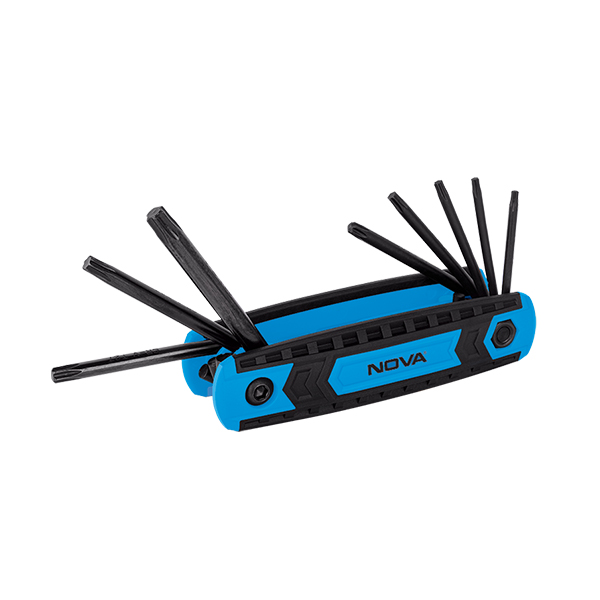 آلن چاقویی ستاره ای نووا مدل 1160 مجموعه 8 عددی، مجموعهای کاربردی و حرفهای است که با طراحی کمحجم، کیفیت بالا و کاربری آسان، گزینهای ایدهآل برای مصارف خانگی و صنعتی محسوب میشود. این ابزار شامل هشت آلن ستارهای در سایزهای T9 تا T40 است و برای باز و بسته کردن انواع پیچهای ستارهای در اندازههای مختلف طراحی شده است.