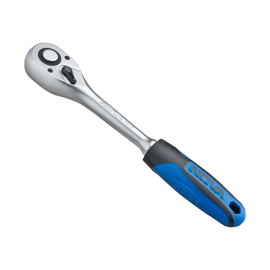 این ابزار از فولاد Chrome Vanadium ساخته شده و به روش Drop Forged تولید گردیده تا استحکام و دوام بالایی داشته باشد. فرآیند حرارت دهی و سخت کاری طول عمر محصول را افزایش داده و سطح مات با روکش کروم مقاومت عالی در برابر زنگ زدگی و خوردگی ایجاد میکند. دسته جغجغه ۱.۴ اینچ 150 میلیمتر نووا مدل 6401 ترکیبی از کیفیت، دوام و عملکرد مطمئن برای کاربران حرفهای محسوب میشود.