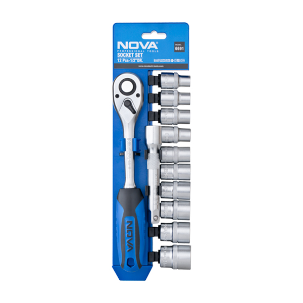ست سر پیچ گوشتی و بکس 1.2 اینچ نووا مدل 6691 مجموعه 12 عددی، مجموعه‌ای حرفه‌ای و مقاوم است که برای کارهای صنعتی، تعمیرگاهی و خودرویی طراحی شده است. این ست شامل ۱۰ عدد سوکت پرکاربرد، یک دسته جغجغه ۷۲ دندانه با طراحی ارگونومیک و روکش ضدلغزش، و یک کمک کوتاه ۱۲۵ میلی‌متری است. تمامی قطعات از فولاد Chrome Vanadium باکیفیت ساخته شده‌اند و به روش Drop Forged تولید شده‌اند تا در برابر فشار، ضربه و سایش بالاترین مقاومت را داشته باشند.