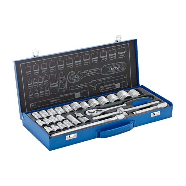 این مجموعه دارای دسته جغجغه ۷۲ دندانه با طراحی ارگونومیک و روکش ضد لغزش است که تسلط، ایمنی و راحتی کاربر را هنگام کار افزایش میدهد. درایو ۱.۲ اینچ و سوکتهای ماشین کاری شده دقیق، امکان باز و بسته کردن پیچ و مهرهها را با دقت و نرمی بالا فراهم میسازند. همچنین وجود شیارهای کنترل بر روی بدنه سوکتها، مانع لغزش و خطا در هنگام کار میشود. تمامی قطعات در یک جعبه فلزی مستحکم و زیبا قرار گرفتهاند که ضمن محافظت کامل از ابزار، حمل و نگهداری آن را آسان میسازد. جعبه بکس نووا مدل 6681 انتخابی ایدهآل برای استفاده حرفهای، کارگاهی و صنعتی است.
